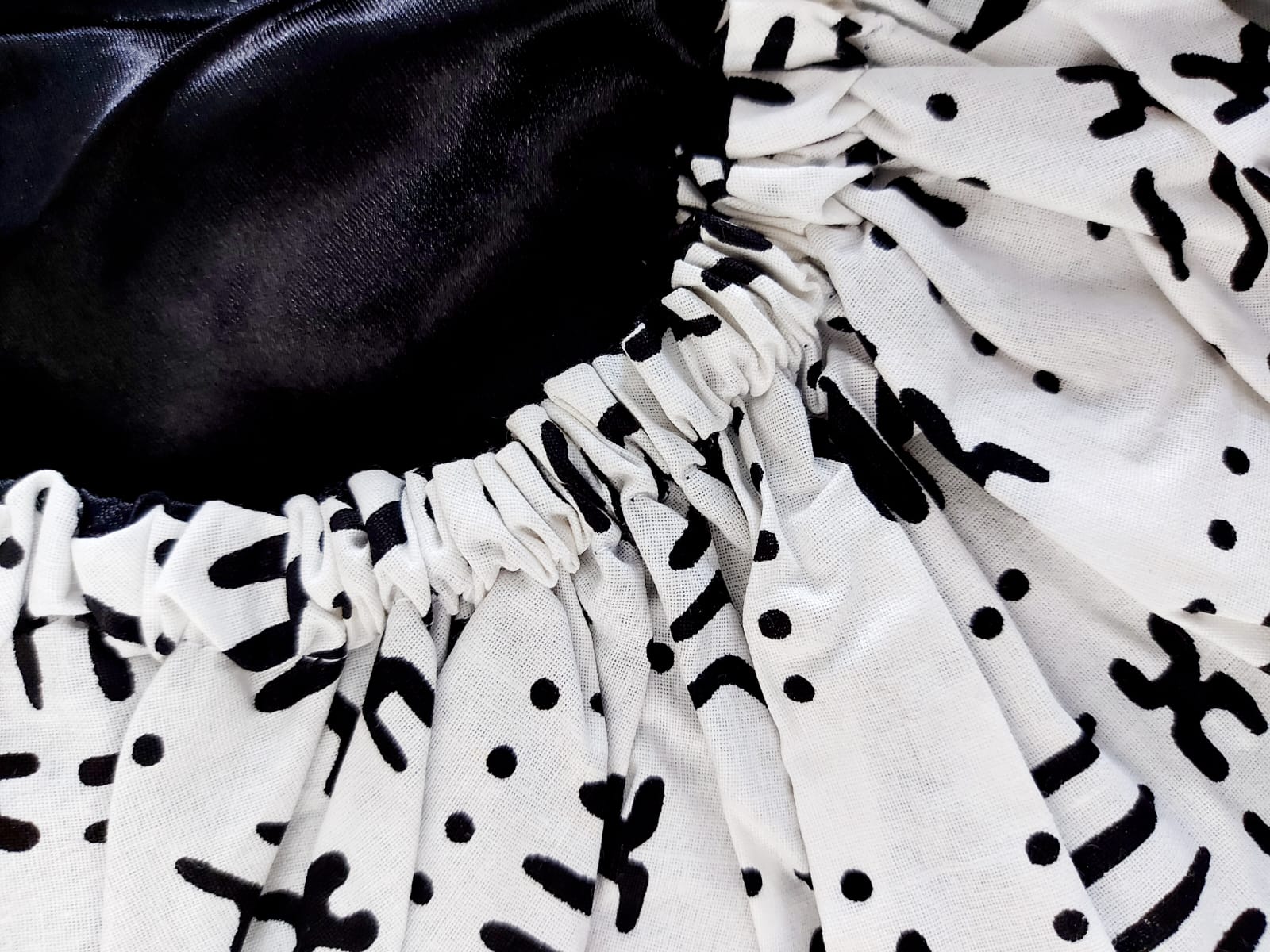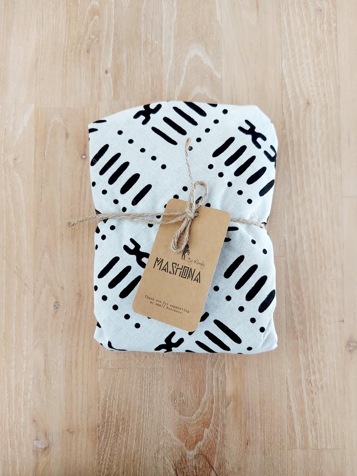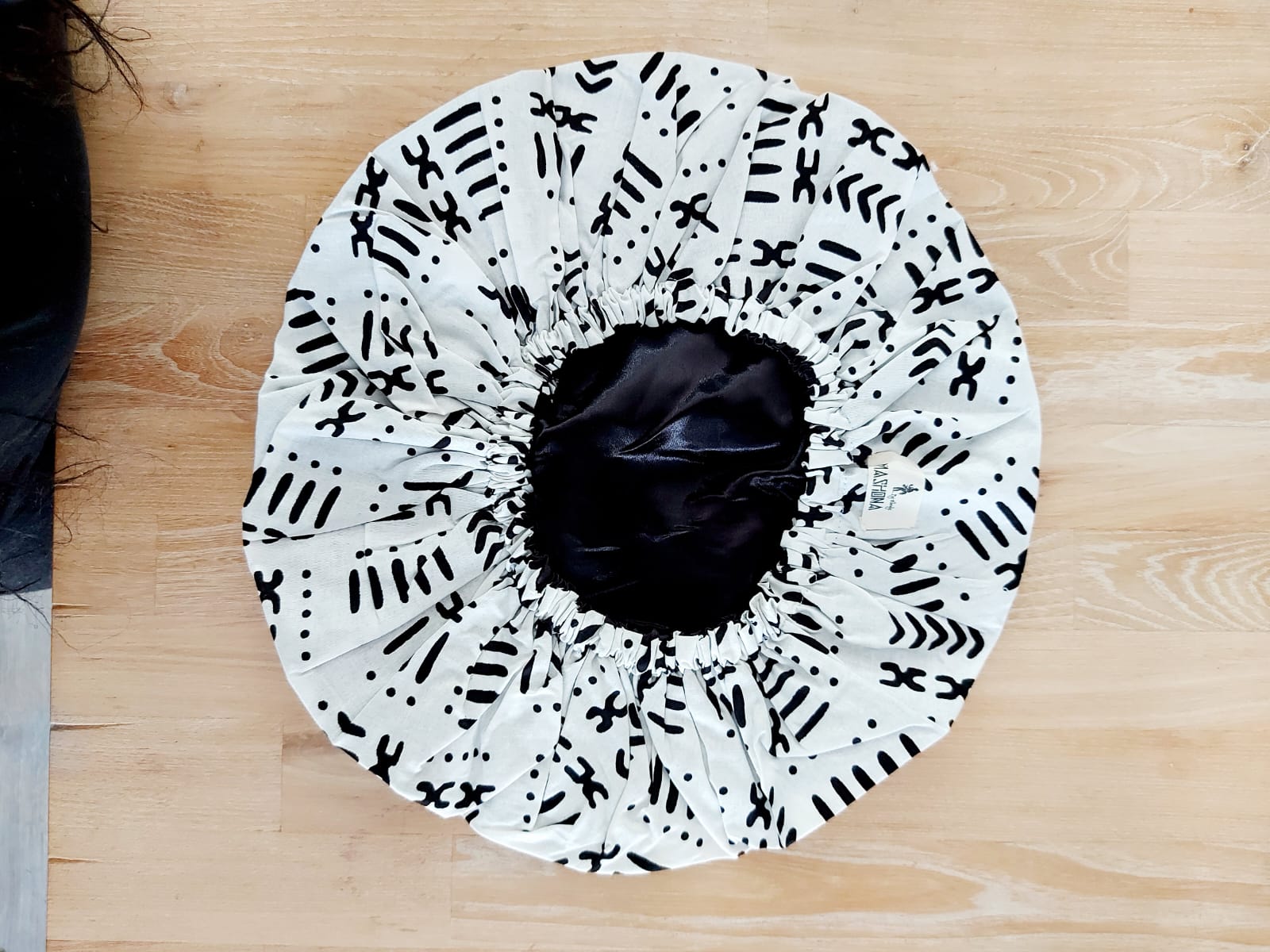 The bonnet is made with 100% Cotton African Mudcloth inspired print fabric on the outside and 100% satin on the inside. The satin helps to protect your natural hair moisture and prevents your hair from getting dry and brittle as a result of friction from the pillowcase.