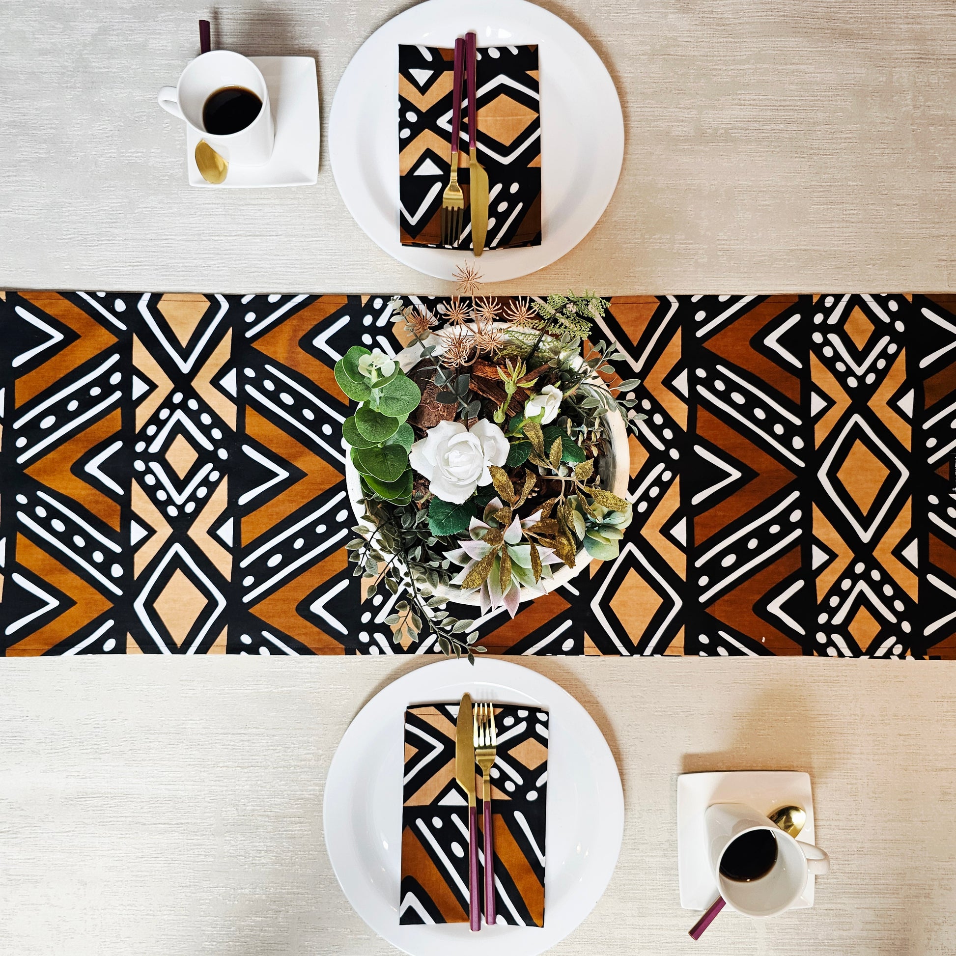 Handmade Table Runner and Set of 8 Napkins | African Print "Mudcloth" Bogolan Inspired Print Made from 100% African Print Fabric